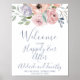 Denna dammiga blommigt i ro välkomnar bröllop poster är perfekt för ett bröllop vår eller sommar. Den romantiska blommigten har en lysande lila, rosa och persikoblommor som är placerade i en vacker bukett. Anpassa poster till namn i bruden och trimmen samt datum och plats för bröllop.