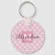 Den här vackra nyckelkedjan har ett klassiskt vitt dammmönster över en dammig ro eller rosa bakgrund. Utformningen är personlig med ett första brev i monogrammet och ett anpassade namn för ett enkelt utseende, men ändå elegant. Perfektens gåva till alla kvinnor som vill ha en nyckelkedja för personlig.