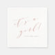 Söt och elegant babyduschnapkin har designen "det är en flicka" i kalligraftexten för chic dammig rosa, med namn under i mjuk grått kursiv stil.
