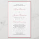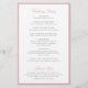 Enkel bröllopsprogram i budgeten med ett tunt gräns tillsammans med ditt namn och dina huvuden i ett elegant i dammig rosa i ro. Den klassiska, traditionella layouten gör den här designen underbar för ett formellt bröllop. Dessa bröllopsprogram i billigten trycks på lakan av papper för ett budgetvänligt alternativ.