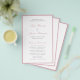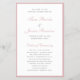 Enkel bröllopsprogram i budgeten med ett tunt gräns tillsammans med ditt namn och dina huvuden i ett elegant i dammig rosa i ro. Den klassiska, traditionella layouten gör den här designen underbar för ett formellt bröllop. Dessa bröllopsprogram i billigten trycks på lakan av papper för ett budgetvänligt alternativ.