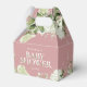 En elegant babyduschförmånslåda med grönt löv och typografi av chic på en dammig bakgrund för ro rosa. Du kan anpassa dig med ditt eget tackmeddelande under locket. Ett perfekt sätt att tacka gästerna! Designad av Thisisnotme©