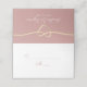 Elegant dammig ro bröllop-platskort med ett romantiskt guld-rep och mjukt handskript med parets namn och datum. Perfekt för att leda gästerna till deras platser med minsta möjliga beröring och snyggt. Detta vikbara kort kompletterar rosa, , guld eller moderna romantiska bröllop teman.