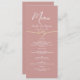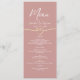 Elegant och en modern dammig ro bröllop-meny med chic, vit typografi, romantiskt guld-rep-hjärta och ren layout. Perfekt för bröllop med teman pastel, minimalism eller rosa och guld. Den här designen av kostym vår, sommar- eller fallskärmar och tillför en förfinad beröring till din bord-dekoration. Fullt anpassade med dina måltider och bröllop datum.