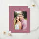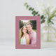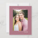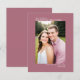 Det här Spara datumkortet är enkelt, modernt, minimalistiskt och klassligt. Det innehåller ett foto som är orienterat mot lodrät eller porträtt på en dammig ro eller en mjuk färgad med rosa med namn, datum och plats för bröllop och titeln "Spara datum" är symmetriskt placerad ovanför och nedanför bild. Artsy och sofistikerad, det här kortet är ett underbart sätt att informera din familj och dina vänner om ditt kommande bröllop.