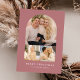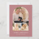 Modern helgdag-fotokort med tre av dina foton som är ordnade i en bågformad rutnätslayout. Anpassa framsidan av multifotokortet med anpassningsbar hälsning och namn i som visas med vit helgdag med dammig bakgrund i ro. Kortet återgår till en subtil dammig ro och vit punkt mönster.