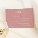 Dessa elegant, minimalistiska bröllop-svarskort har vit, modern manustypografi och ren, sans serif-text för en enkel och snyggt dammig ro-design som du kommer att använda i kärlek. Det finns utrymme att lägga till dina gästalternativ för val av måltid eller val av måltid.