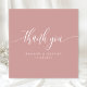 Uttryck tacksamhet med en lite modern elegans. Det här dammiga rosan i ro är ett kort som innehåller ett minimalistiskt skript för kalligrafi som skapar ett tidslöst och hjärtlöst meddelande. Den rena designen behållor fokus på din uppriktiga uppskattning och skapar ett bestående intryck på dina gäster. Som ett perfekt komplement till ditt minimala bröllop-tema blandas det här mångsidiga kortet helt enkelt med romantisk, chic, modern eller sofistikerad estetik. Anpassa det med namn och ett uppriktigt budskap för att skapa ett verkligt speciellt tack för dina nära och kära.