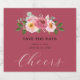 Elegant dammig ro rosa blommigt bröllop spara-den daterade mousserande vin flaska-etiketten med en bukett av dammig ro, rosa, ro, löv blommor, knoppar, eukalyptus och "Cheers"-skript. Anpassa med din bröllop-information och hitta matchande utformningar från min "DreamHut"-butik.