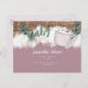 Bjukbildsinbjudan. Information på framsidan och baksidan. Snö. Winter träd. Baby är kallet utanför. Kopp av Hett choklad. Rustic. Dusty Ro och träbakgrund. Vykort.