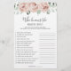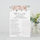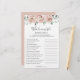 Elegant blommigt möhippa-spel med namnet "Vem känner till "Bride Best?" med vattenfärgad rosor i dammig ro rosa och grön i nybörjare grönt. Nedan följer 15 frågor som kan anpassas till de frågor du vill ha. Det här vackra botaniska temat möhippa-spelet är underbart för en vår- eller sommarmöhippa.