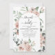 Dusty Rosa Blommigt Ro och Eucalyptus Botanical Grey Watercolor Vår eller Summer Bröllop Brunch och BubLY Champagne Inbjudningskort för möhippa - innehåller vackra och elegant manustypografi med moderna tropiska botaniska blommor och grönenergi för att speciella bruden ska vara firande.