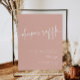 Snyggt-babyduschskylt med skarpt raffeltecken som har en dammig rosa färg palett och ett modernt typsnitt. Detta minimalistiska speltecken är perfekt för en modern eller boho-temedad babydusch för en liten flicka. Koppla ihop det med något i MAEVE-samlingen för att få en sammanhållen blick.