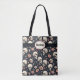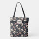 Dusty rosa och vita blommor med döskallar gör en underbar Goth tote-väska för Halloween, eller när som helst.
