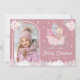 Julkort i elegant med söt rosa, elegant nalle med rosa pastellblommor. Lägg bara till din text på den här lättförståeliga mallen och lägg till det här kortet med ditt favoritfoto för att göra det till ett helgdag av typen "one-of-a-natura". Vänd kortet över för att visa ett julmeddelande i personligen längst bak på kortet.