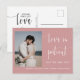 Det här vykortet för utlysning av brev i bröllop innehåller en elegant-kalligrafi och ett enkelt sans-serif-typsnitt med ett foto på en dammig rosa bakgrund för ett rent minimalistiskt och modernt utseende, vilket är ett vackert sätt att informera om ditt kommande bröllop. Enkelheten i den här utformningen gör att du får lite elegans i dina annonskort i bröllop. Det fungerar bra med många bröllop-teman och är definitivt ett underbart tillägg till bröllop. Anpassa bara namn och formuleringen i några enkla steg och anpassa vykortet med ditt foto av lycklig-paret till ge med vykortet ett bra personligt drag. Observera: elegantens kalligrafi av ordalydelsen "Kärlek är tålmodigt, men det är vi inte" och "ingenting finare enbart kärlek" tillsammans med linjer och andra grafiska teckningar och inslag kan inte redigeras, raderas eller flyttat. De är fixerade.