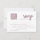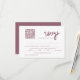 Gör RSVP-funktionerna enkla med Bröllopet OSA Dusty Rosa QR Code. Framsidan har en skarp vit bakgrund med mjuk, dammig rosa text, en QR-kod för snabba digitala svar och utrymme för menyval. Baksidan kompletterar utformningen med en dammig bakgrund i rosan som visar initialer och bröllop-datum för bruden och brudgummen i elegantens vita text. Perfekt för modernt, romantiskt eller boho bröllop, den här OSA kort blandar stil och bekvämlighet och lägger till en personlig och chic vid ditt bröllop-kontorsmaterial.