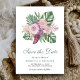 Med den här eleganten kan du överraska dina gäster och spara det datum som innehåller vackra blommor och grönt handflatan löv med modern typografi. Lägg bara till din händelseinformation i den här mallen för enkel använda för att göra det till en sorts Spara datumkortet.