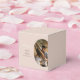 En dammig rosa, modern, minimalistisk bröllopsaffär som innehåller ditt eget foto med en bågoval och titeln "tack". Ett enkelt sätt att tacka dina gäster. Den moderna uppställningen av typografin ge är ett tydligt stil. Det finns också möjlighet att matcha bröllopsinbjudningar och andra artiklar i kontorsartiklar.