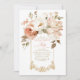 The Design Aesthetic: This invitation features a breathtaking, painterly arrangement of lush florals at the header. The bouquet overflows with full-bloom white peonies, dusty rose garden roses, and warm accents, all softened by sage and beige greenery. The artwork mimics the texture of vintage watercolor paintings, tapping into the highly popular "Romantic Botanical" trend.