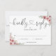 Ett enkelt elegant dammigt rosa blommigt svart och vitt skript hjärtligt svar RSVP-kort med dina detaljer i chic typografi. Designad av Thisisnotme©