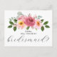 Dusty Rose | Blush Rosa Blommig Brudtärna Vykort