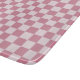 Pink and white checkerboard pattern with evenly spaced squares. The design is simple, creating a playful and retro feel.