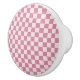 Pink and white checkerboard pattern with evenly spaced squares. The design is simple, creating a playful and retro feel.