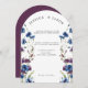Eleganten och den moderna blommigtens bröllopsinbjudan har vattenfärgsblått royal och lila blommor, sage grönt botaniskt löv och eukalyptus. Hitta mer överensstämmande design i min guldbeckbutik.