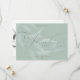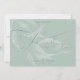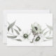 Typografi för alltid i Kärlek i en finare-manuskalligrafi - markerad på ett sätt som nästan verkar präglat. Minimal unik typ för namn och datum - vispigt vit halvgenomskinlig eukalyptus lämnar upp framsidan bakom texten på en dammig bakgrund. På baksidan finns en vattenfärgsversion av anemonblommorna och löven i fullt färg mot en vit bakgrund. Design efter WhimsicalArtwork™