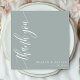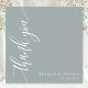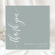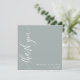 Uttryck tacksamhet med en lite modern elegans. Den här dammiga grönten tack vare att du har ett enkelt lodrät-minimalistiskt calligraphy-skriptteckensnitt som skapar ett tidslassigt och hjärtlöst meddelande. Den rena designen behållor fokus på din uppriktiga uppskattning och skapar ett bestående intryck på dina gäster. Som ett perfekt komplement till ditt minimala bröllop-tema blandas det här mångsidiga kortet helt enkelt med romantisk, chic, modern eller sofistikerad estetik. Anpassa det med namn och ett uppriktigt budskap för att skapa ett verkligt speciellt tack för dina nära och kära.