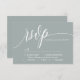 Låt kärlek blomstra med en aning enkelhet i eleganten. Den här OSA kort för dammig grönt har ett modernt calligraphy-skript och lägger till en liten respit utan tidpunkter i bröllop-skrivbordet. De minimalistiska behållorna fokuserar på OSAN och säkerställer en tydlig och snyggt respons från dina gäster. Som ett perfekt komplement till ert minimalistiska bröllop-tema blandas denna mångsidiga OSA kort helt enkelt med romantisk, chic, modern eller sofistikerad estetik. Anpassa den med information om namn och bröllop för att skapa en sammanhängande responssvit för din speciella dag.
