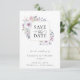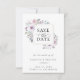 Söt blommor i vattenfärgsträdor i trendig skuggor av dammig violett, rosa och grönt, Bröllop spara datum Card. Kortets baksida, som visas i dammig violett, kan anpassas.