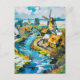 Acrylic fantasy painting of a vibrant Dutch countryside with traditional windmills, colorful houses, and flowing water channels under a glowing sky. The rich colors and dynamic brushwork create a lively, storybook atmosphere that blends rural charm with cultural beauty. Ideal for home decor, travel‑themed products, calendars, greeting cards, and editorial visuals inspired by European landscapes.