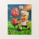 A proud Dutch tulip in orange colors faces a foamy German beer glass in a national soccer jersey on a bright stadium field. Both characters pose expressively in a clean vector‑like style with soft 3D shading. Stadium lights and detailed grass create a lively and competitive soccer atmosphere.