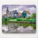 Traditionella fiskehus, kanal och svan i Marken, Nederländerna. Visa kanal, bro och traditionella fiskehus i byn på vattenland. Traditionella Hollandsymboler.