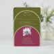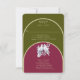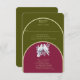 Böjd tre färgers bröllopsinbjudan, i Olivgrön, Burgunder och Gul.