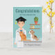Jag gratulerar en veterinär student till studenten med hjälp av denna personlighetsdugliga utformning med Desteis ursprungliga söta tecknad som illustrerar en veterinär man i ett undersökningsrum på en veterinärklinik. Veterinären bär en svart studentmössa med en gult- kärl, ett vitt laboratorium jackar, blåskrubbar och har ett stetoskop runt nacke. Veterinären har brunt hår och ett leende ansikte uttryck. På väggen finns det två bruna flytande hyllor med en grönt läaféanläggning och två små mediciner burk som placeras på dem. Intill veterinären finns en orange katt och en brun och vit valp färg sitta på en grått-undersökning i bord. Det finns också anpassningsbara textområden som är idealiska för att skriva ett anpassningsbar-meddelande tillsammans med student eget namn.