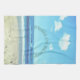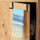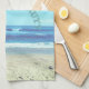 Scenic photo of the beach with sand and the words "dwell on beauty " kitchen towel