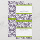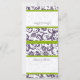 DY Vintage Damask Lapis Lila and White with Apple Grönt Trim Escort Ställe Setting Cards. Nästa menyalternativ är tryckt på letterhead och är därför bara tryckt på framsidan - baksidan kommer att vara precis den vanliga pappra utan färg eller design - det är nackdelen - fördelen skulle bli storlek (8,5 x 11) Nu är nästa meny densamma som den ovan (tryck på en) endast sida och större 8,5 x 11 storlek) men den har en något tunnare grönt som vissa kanske föredrar. - Skador Swirl-bröllopsinbjudningar -Spara datum - Svarskort - Infoga kort - Säteskartor - Bröllop-menyer med mera. Om du vill ha en glansig avsluta (glansig endast på framsidan) ska du beställa det enkla, linne eller metalliska - för en maska avslutar ordning som återanvänds, känns eller spräckt. Färg: Vita