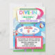 Denna mycket färgrika vattenfärg Dyk-I inbjudan för filmpartyfödelsedag är säker att imponera dina gäster. Presentera vattenfärgdiagram, en bassäng i bakgrunden, och ett färgrikt undertecknar i den drive-in- stilen för vintage, gör detta tema för en roligt och färgrikt, bassängpartyinbjudan.