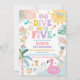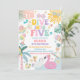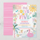 Gör en storslagen inbjudan med denna färgglada "Dyk in i fem"- födelsedagsinbjudan, perfekt för en sommars poolfirande. Med lekfulla illustrationer av glass, popsicles, flamingoflottar, palmer och strandbollar sätter denna glada design tonen för en dag full av kul. Idealiskt för barns poolkalas, tropiska födelsedagar eller sommarfiranden är denna inbjudan både livfull och engagerande. Anpassa med dina fests detaljer för att skapa ett minnesvärt souvenir som gästerna kommer att älska.