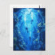 Fånga havets stilla skönhet med den här vykortsbilden med dykardykare som utforskar en serenvärld under vatten. Designat i mjuka blåtoner visar det grova mantastrålar, vibranta korallreven och solljusfiltrering genom vatten, och kastar mjuka skuggor på dykarnas silhuetter. Perfekt för älskare, dykentusiaster och någon som inspirerats av havets underverk.