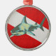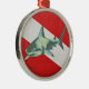 Den röda och vita, randiga dykan flagga, med en hajdesign och "dykning" av ord