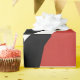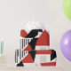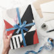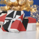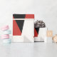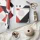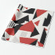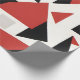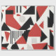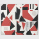 A bold composition of red, black, and white geometric shapes, including triangles, rectangles, and lines, forming a modern abstract design.