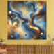 Fluid streams of blue and gold create a mesmerizing pattern, reminiscent of flowing water or swirling smoke. Light reflections add a touch of elegance and depth.