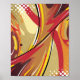 En energisk abstrakt med svepande, korsande kurvor i rött, gult, brunt och beige. Konstruktionen har lagerformer med övertoningsfyllningar, diagonalt struktur och fet färg kontrasterar. Vita, prickade mönster tillför en lekfull, modern beröring, medan det vassa, flytande linjer skapar en känsla av snabbhet och rörelse. Perfekt för contemporary, uttrycklig dekorfärg.