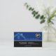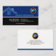 En enkel design med ett dubbel tonar färgbakgrund. De bästa blåtten portionr har en abstrakt blåtttakdesign på den vänstra väggen; dess affärsnamn är precis bredvid det. Din guld- symbolslogotyp för den valfria fauxen är norrut av denna. En slå vit fodrar avgränsar upperen delar upp mot den lägre svarten portionr. På sistnämnden allt ditt korts lagras information här. En liten vertikal vit fodrar avskiljer ditt namn, och jobbtiteln på det vänstert mot din kontakt specificerar på motsatsen avslutar. Varje specificerar tilldelas en kula pekar. Nära golv av kortet har du en slogantagline. Designen avslutar av med en vitgräns på kortets golv.