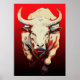 Detta djärva och fängslande konstverk, med titeln "Dynamisk tjur i eldigt rörelse", fångar den råa kraften, energin och anden hos en anfallande tjur mitt i en brinnande eldröd bakgrund. Utfört i en uttrycksfull, semi-abstrakt stil, använder designen skarpa kontraster och dynamiska linjer för att framhäva tjurens muskulösa form och vilda närvaro. Den anfallande tjuren, med sina breda horn och intensiva blick, utstrålar styrka och beslutsamhet, symboliserande motståndskraft, energi och obeveklig kraft.