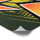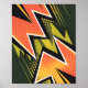 En sjudande popart-inspirerad bild med stora, feta pilar i orange, gult och svart som skär diagonalt över ram. Bakgrunden är fylld med rasterpunkter och vasst linjer i kontrasterande grönt och svarta toner, vilket ger en känsla av rörelse och energi. Användan att stryka färg och dynamiska former framkallar en tecknad bok stil.